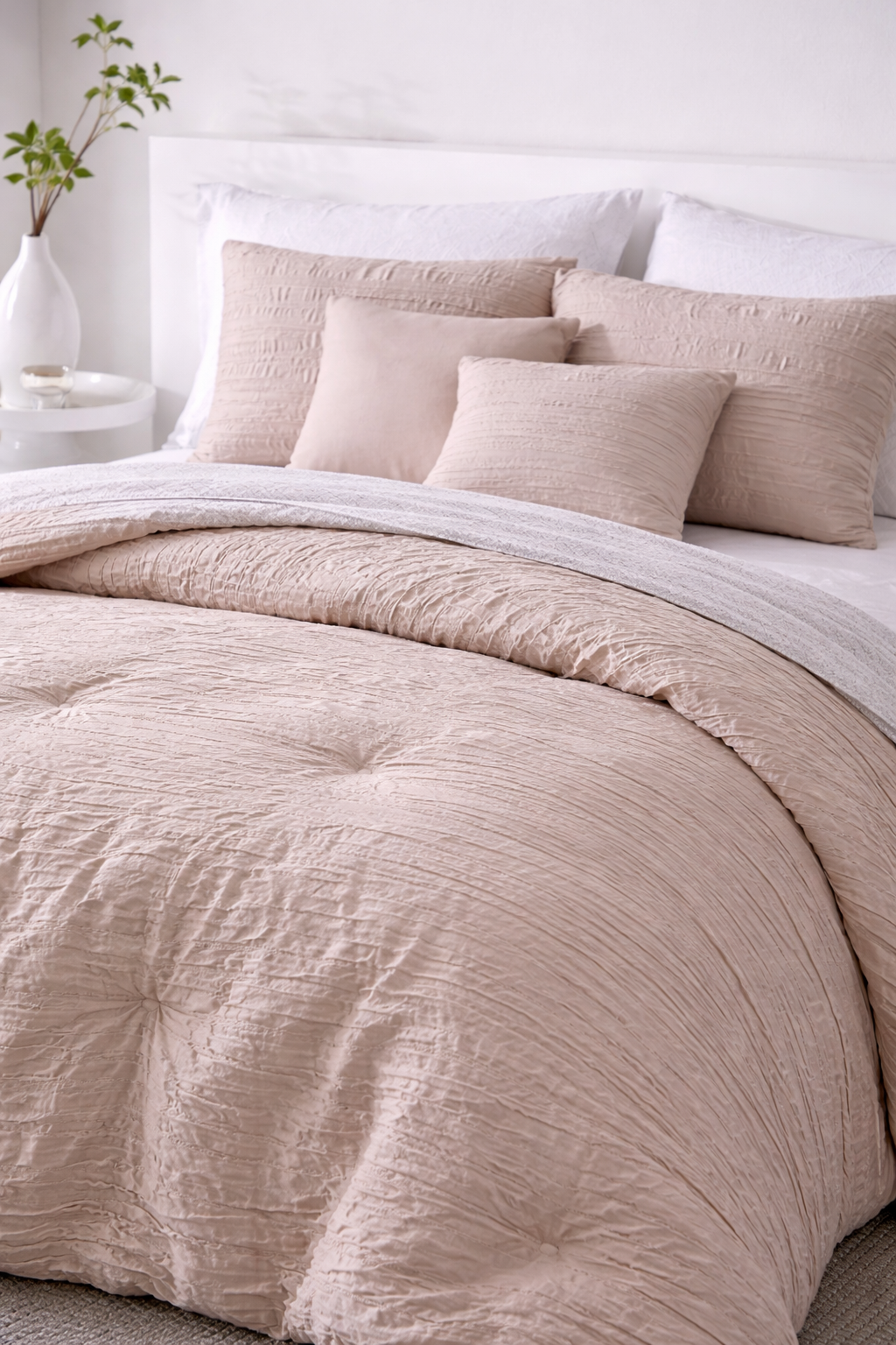 Set de edredón Birch con detalles en drapeado. Esponjado pero ligero.