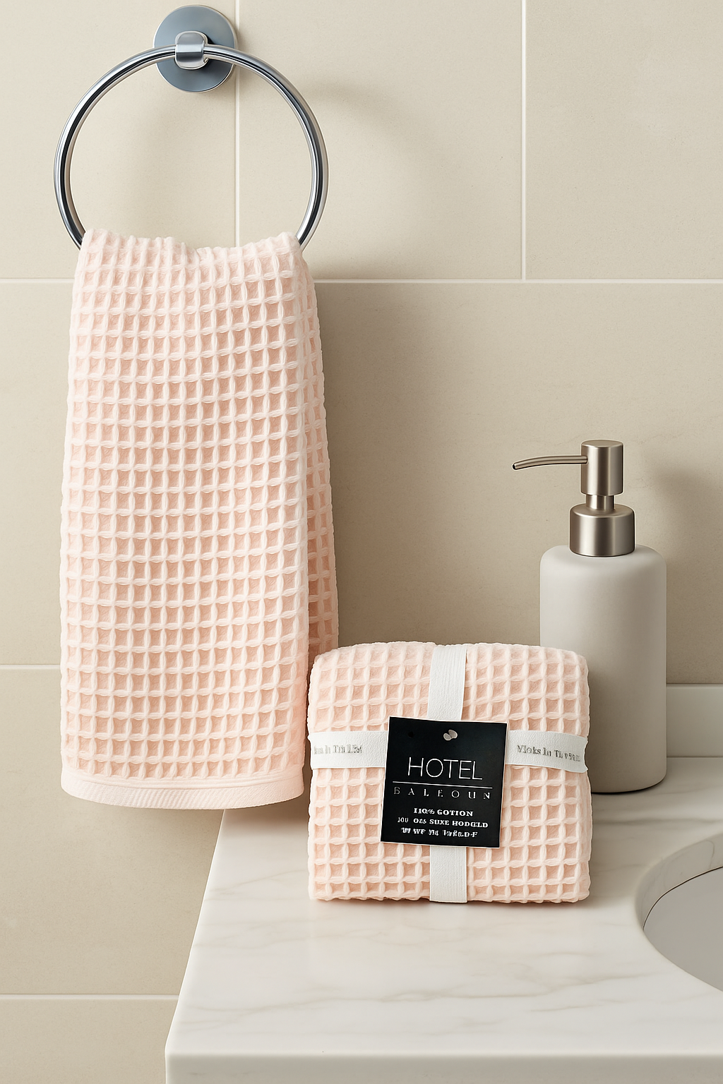 Agrega un toque de lujo y elegancia a tu baño con el Juego de 2 Toallas de Mano Hotel Balfour. Elaboradas en Turquía con 100% algodón y un delicado tejido tipo waffle, estas toallas ofrecen una textura suave, alta absorción y secado rápido. Su tono rosa bebé aporta calidez y estilo, convirtiéndolas en el complemento ideal para cualquier baño moderno.
